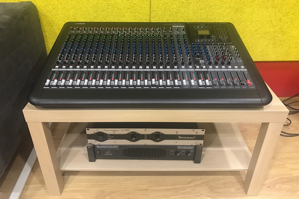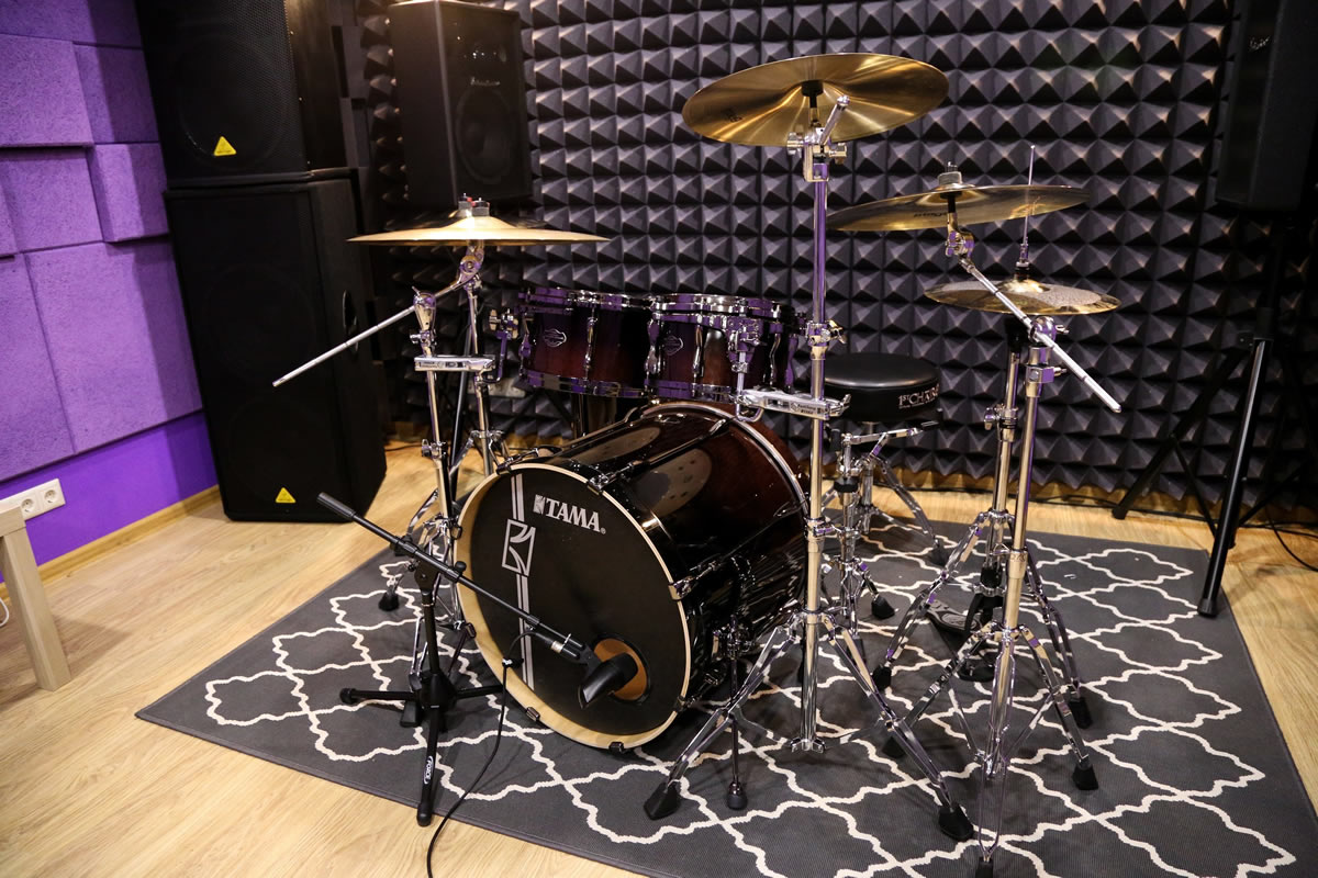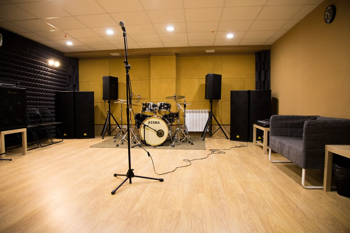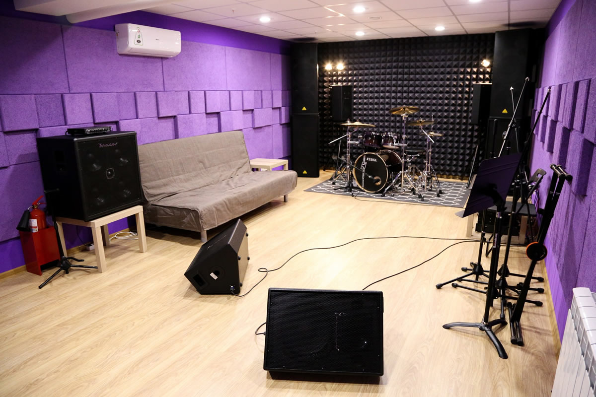 Общий обзор На нашей репетиционной базе пять комнат. Они все просторные – от 28 до 35 квадратных метров. В каждой комнате есть кондиционер, отопление, вентиляция, трёхуровневый свет, диван и кофейный столик. Разумеется, мы использовали специальные профессиональные материалы для внутренней отделки комнат, в них очень чёткий и читаемый звук. Только ламповые гитарные усилители, мощный бас, дополнительные мониторы, барабаны Tama, вокальная линия 4 кВт. |
